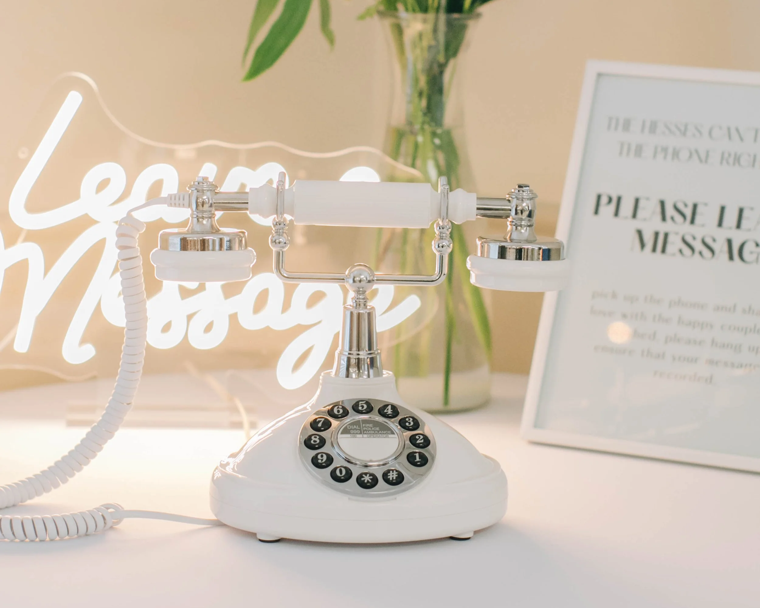 Our high quality vintage audio guestbook is a unique and elegant way to capture heartfelt messages from your guests. This beautifully designed telephone records high quality audio, preserving every word with clarity. Perfect for weddings, anniversaries, or special celebrations.
